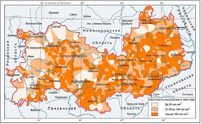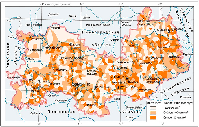 В настоящее время Республика Мордовия относится к густонаселенным регионам Российской Федерации. Средняя плотность населения на 2024 г. – 29,05 чел./км2) [2]. По плотности населения она занимает третье место в Волго-Вятском районе, уступая Чувашской Республике и Нижегородской области.
