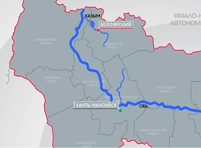 Город Белоярский является административным центром Белоярского района, расположенного на берегу р. Казым, впадающей в Обь. Отличительной чертой реки является короткое по длительности половодье, протекающее в мае и июне. После половодья река сильно мелеет, из-за этого вскрываются широкие песчаные косы, ближе к истокам. Река замерзает в середине осени, лед начинает свое движение лишь в конце весны. Судоходна до г. Белоярский.