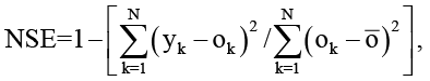 где yk – рассчитанный расход воды, ok – наблюденный расход воды, ō – средний по выборке расход воды.