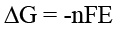 где n – число электронов, участвующих в реакции; E – электродный потенциал гальванического элемента, который рассчитывается как разность потенциалов окислителя и восстановителя, В; F – постоянная Фарадея F = 96485 Кл/моль.