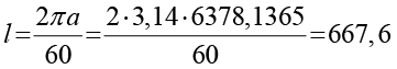 Для проекции Гаусса с зонами величиной 6° и значением большой полуоси a – 6378,1365 км [5], можно получить ширину зоны l на экваторе по формуле