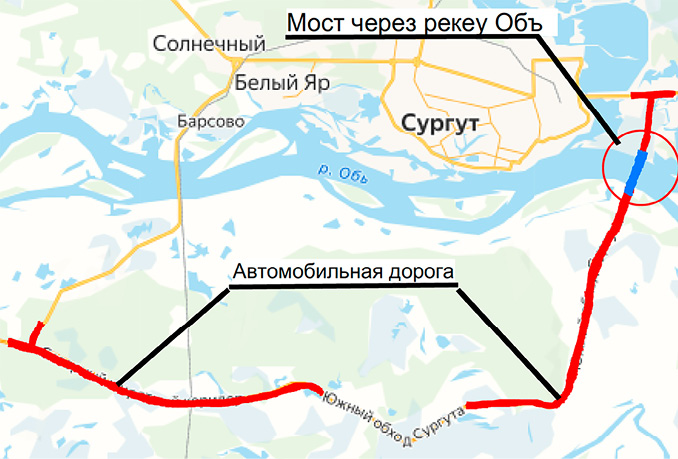 Сургутский мост построен вблизи г. Сургута в Ханты-Мансийском автономном округе – Югре.
