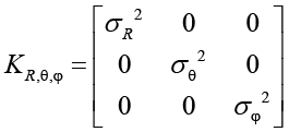 Было принято, что результаты измерений независимы, в связи с чем ковариационная матрица Kx,y,z координат была определена следующим образом: